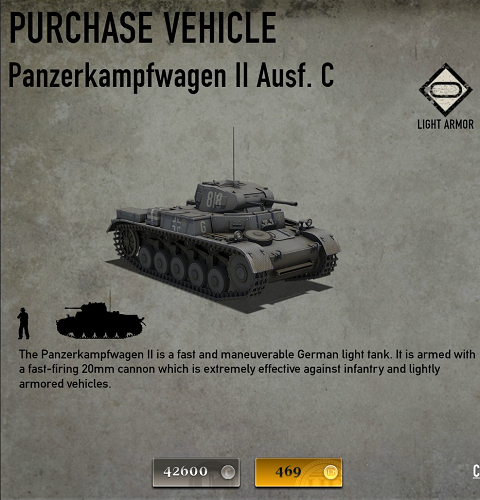 ドイツ軍の初期戦車。本ゲームのアイドル。 徹甲弾を装備した連装機銃を装備しているが、あくまで機銃なので対戦車を想定して運用すると痛い目を見る。 主砲は初期装備で100mで5mmの装甲貫徹能力しかない。 米軍初期戦車M2A2の装甲が一番薄い後部ですら装甲は7mmあり、50m程度接近しないと貫通できない。 炭化タングステン徹甲弾でようやく13mmの貫徹能力を得られるが、M2A2の正面装甲は16mmであり、一方的に撃破されることはあっても逆は無い。 もしどうしようもないときは100m以内に接近し、正面以外を撃つしかない。 装甲も全車両中最薄でありジープや歩兵狩りに徹し味方戦車・歩兵の援護するように動くことで活躍できる。