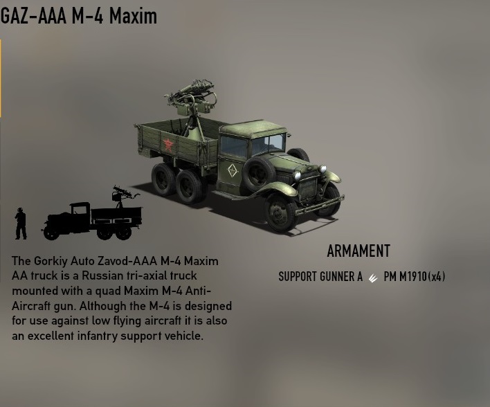 対空車両とちがいこちらはリスポーン可能である。GAZ-AAA M-4の車体使い回しなどと言ってはいけない。実装は遅いが、こちらが本来は本家である。