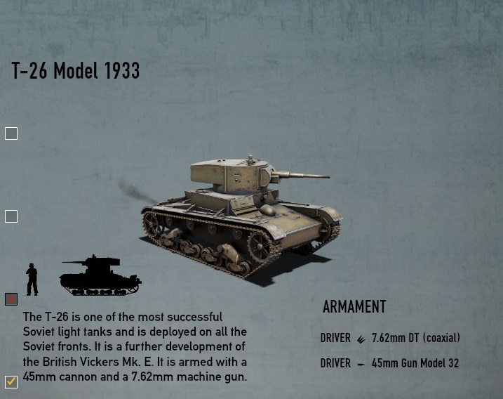 45mm主砲装備のため、装甲以外は特に欠点がない。マルチロールな戦車。 |