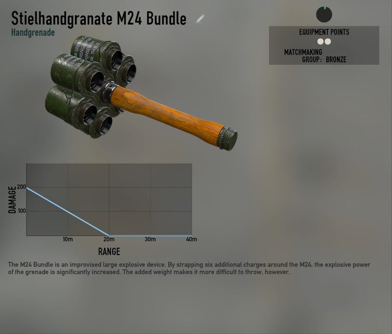 半径5mほどの歩兵は即死する。M24より少し投擲距離が落ちているので注意。