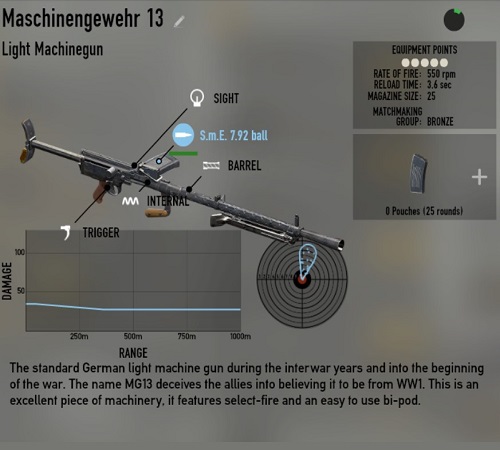 セミ・フル切り替え機能つきでありMG42に比べ、連射力に劣るが反動がさほど強くないため、MG42と比べると扱いやすい武器。