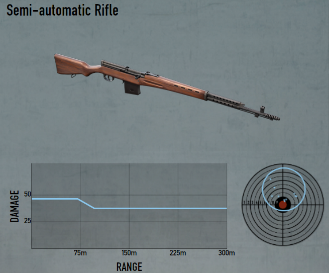 威力と精度はセミオートライフルとサブマシンガンの中間ほどで、射撃速度が高く装弾数も多い。